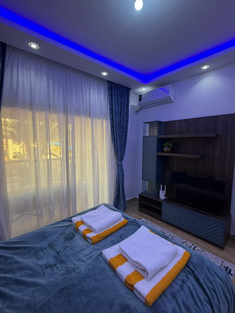 A kényelmes, légkondicionált apartman nappalival, külön hálószobával, felszerelt konyhával, erkéllyel, gyors Wi-Fi-vel, okostévével és hűtőszekrénnyel várja vendégeit az El Karma Aqua Beach Resort területén, közvetlen tengerparti elhelyezkedéssel. A Vörös-tenger közelsége, a resort medencéi és csúszdaparkja ideális választássá teszik párok, családok és kisebb baráti társaságok számára is. A szállás önellátásra is kiválóan alkalmas, emellett all inclusive ellátás is igényelhető, így mindenki megtalálhatja a számára legkényelmesebb megoldást.